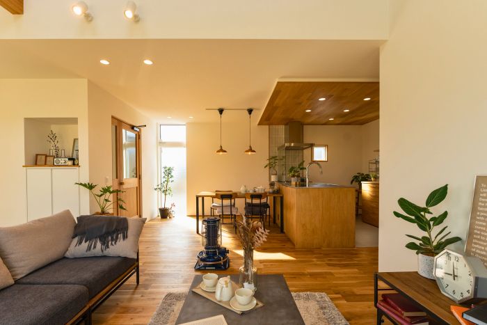 こちらのお宅は、ご夫婦と2人のお子さんが暮らす家です。家事はほぼ1階で完結するプランで、広いLDKのすぐ隣には、室内干しの部屋やファミリークローゼットもあります。