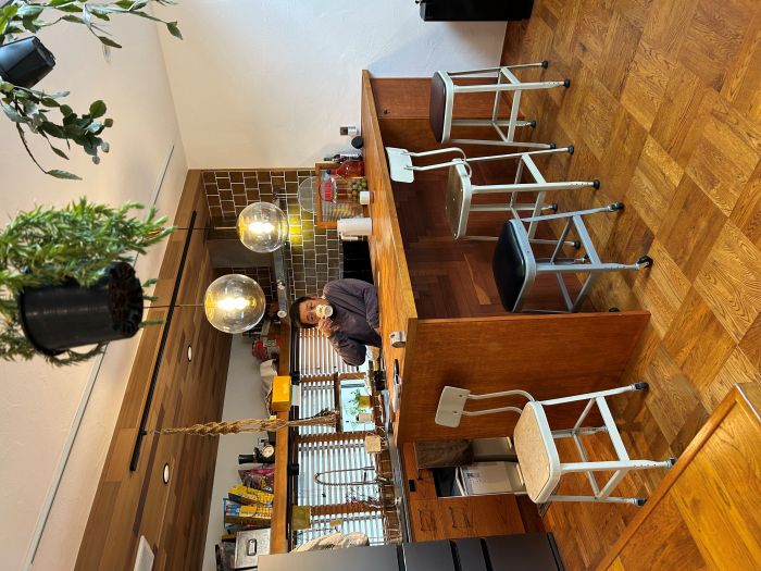 扉を開け中に入ると、打ち合わせテーブル以外に、カフェのカウンターのようなスペースも。不思議と心休まる空間です。