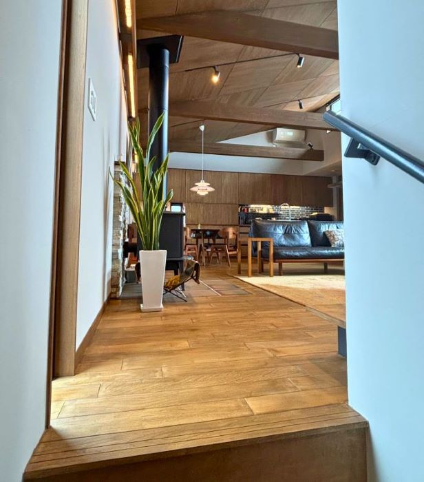 階段を上がるとキッチンとダイニングが目に飛び込んでくる
