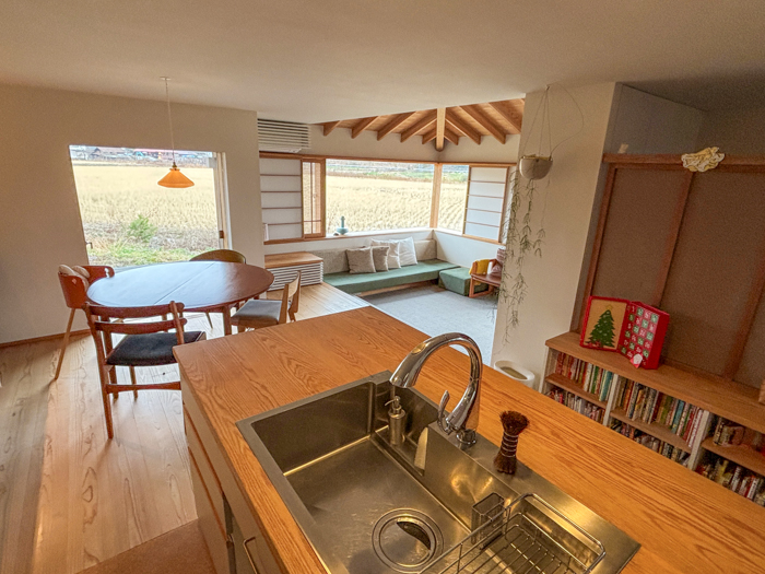 石川さんは妻と子ども2人の4人家族。自然に恵まれた場所で子育てしたいと、田園風景が広がる自然豊かな場所に家を建てました。設計にあたっては、その景観に溶け込みつつ、室内に取り込むことを意識したと言います。