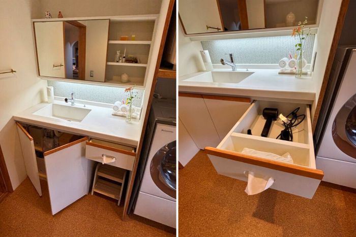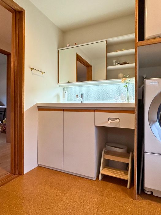 フレックスシンクを採用した洗面台にも造作ならではの工夫が