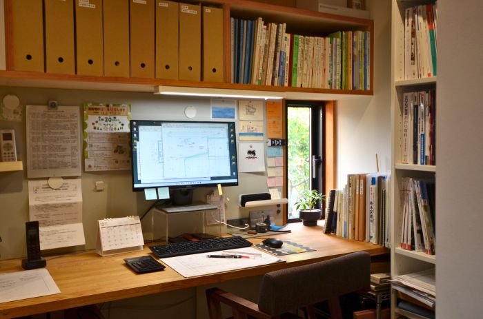 自宅の一角にある事務所を訪れた人は、打ち合わせのあと、福田さんの自宅を見学することで、家づくりの方向性や、大事なことが見えてくると言います。