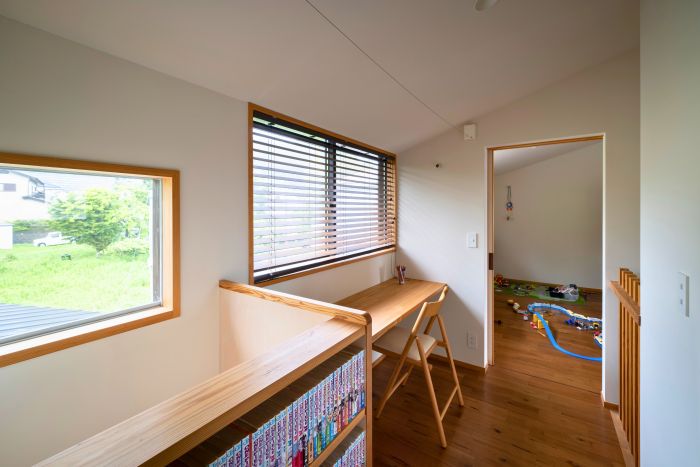 2階の主寝室と子ども部屋の間には、家族みんなで使えるスタディコーナーが。至る所に家族の「居場所」がある家になりました。