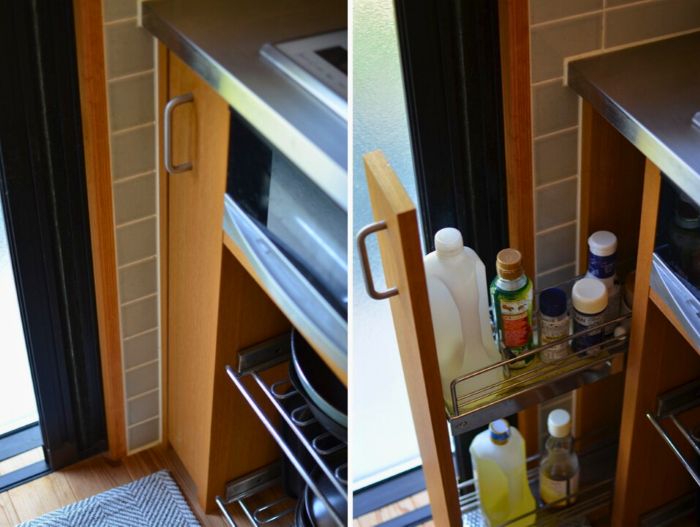 コンロ脇にはekrea Partsのスライドストッカーを設置