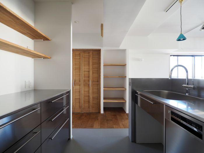 キッチンはekrea Parts「キッチン・キット」をベースにした、空間社オリジナルキッチンを採用。