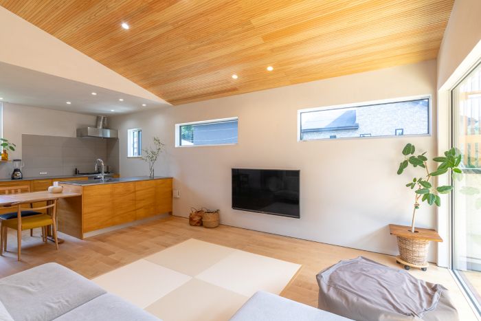 完成したのは、延床面積30坪の平屋。その約半分をLDKにあてた、開放感あふれるプランです。