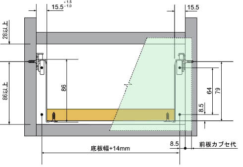 引出システム(iBox) 引出システム(iBox) 商品コード:SPM07355 ¥869~(税抜:¥790~) 出荷目安2営業日後(在庫がある場合) ダウンロード 価格改定金額(2023.01より).pdf ダウンロード 30-2810レールとソフトクローザー資料.pdf ご注意事項 ※前板、底板、背板は別途ご用意ください。 ※取付にはレール長さ + 3mm 必要です。 引き出しレールiBoxの特徴と取り付け方(Youtubeサイトへ遷移します) ローコストで耐久性に優れたソフトローラータイプのレールシステム ディバイダーレールはキャビネット幅に応じてカットできます。(キャビネット内寸幅-74) (1) 引出側板 :左右 (2) キャビネット側レール :左右 (3) 前板ブラケット :左右 (4) カバーキャップ :2個 (1) サイドレール :2本 (2) レーリング用ブランケット :左右 c/content/SPM07355-3.jpg (1) ディバイダーレール :1本 (2) ディバイダークリップ :2個 前板・底板・背板カット寸法 #1 前板・底板・背板カット寸法 #2 背板:幅=キャビネット内寸法-31mm、高さ=72mm(底板厚15mmの場合) 底板:幅=キャビネット内寸法-31mm、長さ=引出し長さ-2mm ※底板厚15mmの場合 iBoxの特徴と取り付け方 ・引き出しの取り付け方 ・引き出しがうまく閉まらないときの対処法 ・扉の付け方 ・扉の調整の仕方 などを解説しています 商品スペック サイズ L270mm~550mm 側板高さ 86mm 2段引 引き残り L270mm~400mm:85mm L450mm:95mm L500mm:102mm L550mm:110mm 材料 仕上 スチール エポキシコーティング ホワイト (本体)アルミニウム ホワイト(サイドレール、ディバイダーレール)ポリアミド ホワイト(ブラケット ディバイダーレール) 定格荷重 30kg セット内容 側板左右、レール左右、前板ブラケット左右、カバーキャップ2個 引出しシステム本体 画像 商品コード 商品名 数量 単価 30-2810 品番:30-2810 引出システム iBox H86 L270mmホワイト 数量 (セット): 0 ¥ 1,122 (税抜¥ 1,020) 30-2811 品番:30-2811 引出システム iBox H86 L350mmホワイト 数量 (セット): 0 ¥ 1,199 (税抜¥ 1,090) 30-2812 品番:30-2812 引出システム iBox H86 L400mmホワイト 数量 (セット): 0 ¥ 1,254 (税抜¥ 1,140) 30-2813 品番:30-2813 引出システム iBox H86 L450mmホワイト 数量 (セット): 0 ¥ 1,331 (税抜¥ 1,210) 30-2814 品番:30-2814 引出システム iBox H86 L500mmホワイト 数量 (セット): 0 ¥ 1,452 (税抜¥ 1,320) 30-2815 品番:30-2815 引出システム iBox H86 L550mmホワイト 数量 (セット): 0 ¥ 1,584 (税抜¥ 1,440) オプション 画像 商品コード 商品名 数量 単価 30-2820 品番:30-2820 ibox用レーリングシステムセットL270mm用 ホワイト 数量 (セット): 0 ¥ 858 (税抜¥ 780) 30-2821 品番:30-2821 ibox用レーリングシステムセットL350mm用 ホワイト 数量 (セット): 0 ¥ 869 (税抜¥ 790) 30-2822 品番:30-2822 ibox用レーリングシステムセットL400mm用 ホワイト 数量 (セット): 0 ¥ 913 (税抜¥ 830) 30-2823 品番:30-2823 ibox用レーリングシステムセットL450mm用 ホワイト 数量 (セット): 0 ¥ 957 (税抜¥ 870) 30-2824 品番:30-2824 ibox用レーリングシステムセットL500mm用 ホワイト 数量 (セット): 0 ¥ 990 (税抜¥ 900) 30-2825 品番:30-2825 ibox用レーリングシステムセットL550mm用 ホワイト 数量 (セット): 0 ¥ 1,100 (税抜¥ 1,000) 30-2827 品番:30-2827 ディバイダーセット キャビネットW1050mm用 ホワイト 数量 (セット): 0 ¥ 715 (税抜¥ 650) 30-2881 品番:30-2881 右用ソフトクローザーユニット 421.39.025 数量 (個): 0 ¥ 572 (税抜¥ 520) 30-2882 品番:30-2882 左用ソフトクローザーユニット 421.39.026 数量 (個): 0 ¥ 572 (税抜¥ 520) 30-2883 品番:30-2883 ソフトクローザー用ストライカー421.39.027 数量 (個): 0 ¥ 66 (税抜¥ 60) カートに入れる おすすめ商品一覧 引出収納システム 商品詳細へ フレームバスケットⅡ 商品詳細へ ワイヤーシェルフ(販売終了) 商品詳細へ ダウンキャビネット 商品詳細へ 【販売終了】引出システム(ノヴァデラックス・プロ)メタリック色 商品詳細へ ワイヤーシェルフⅡ 商品詳細へ 引出システム(ノヴァプロスカラ)シルバー色 商品詳細へ 引出システム(ノヴァプロスカラ)ストーン色 商品詳細へ 引出システム(ノヴァプロスカラ)アイス色 商品詳細へ