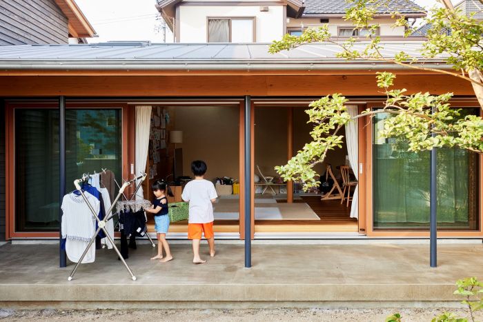 最初にご紹介するのは、共働きのご夫婦が2人の幼い子どもと暮らす家です。仕事や育児に忙殺されるなか、街なかの暮らしを楽しみたいという要望に応え建てた家です。