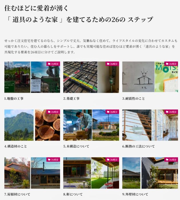ホームページにある「道具のような家を建てる26ステップ」