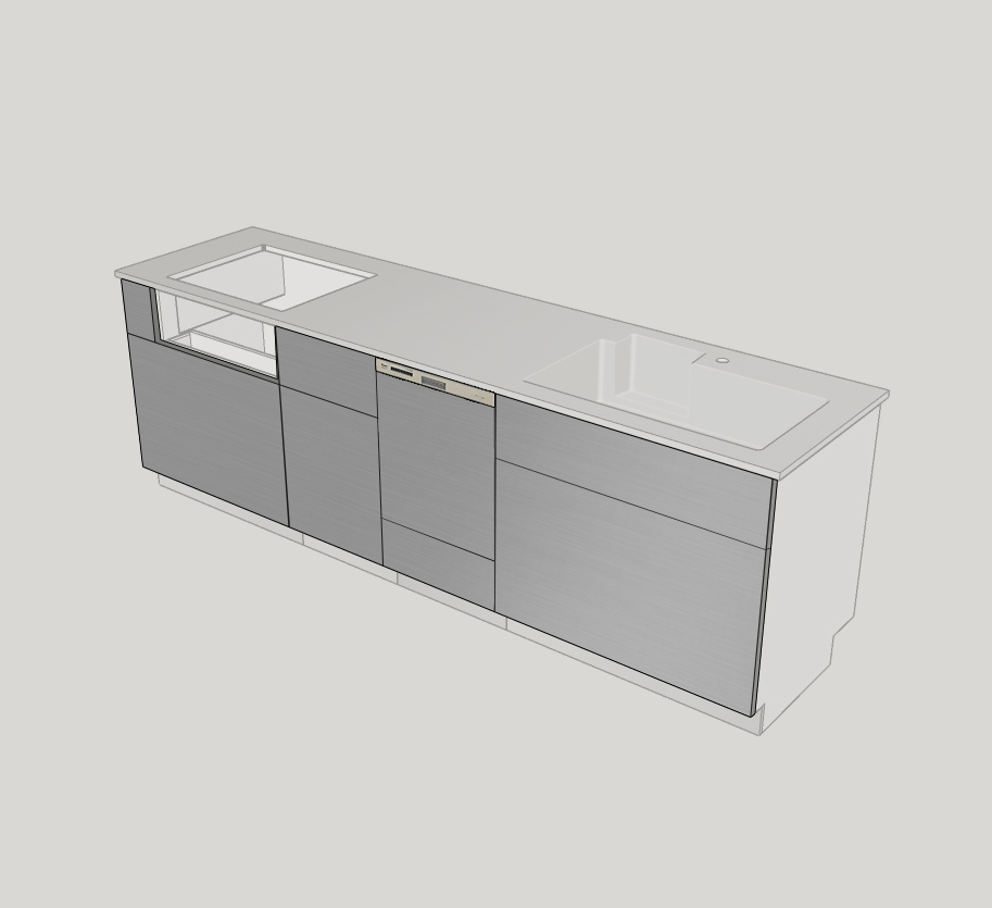まず、キッチン・キットとは、「シンク+カウンター+キャビネットが一体になったキッチンのベースユニット」です。