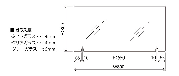 ガラス厚 ミストガラス/t4mm、クリアガラス/t4mm、グレーガラス/t5mm