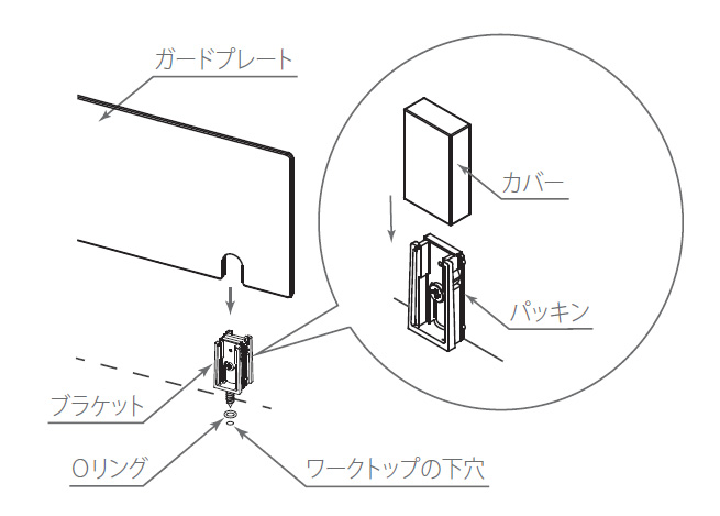 ・ワークトップ側からビス1本での簡単取り付け