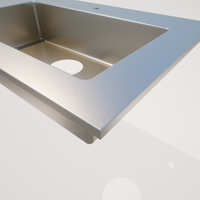 ステンレスキッチン天板(断面:t20見付)食器棚・作業台用 ~W2100xD650